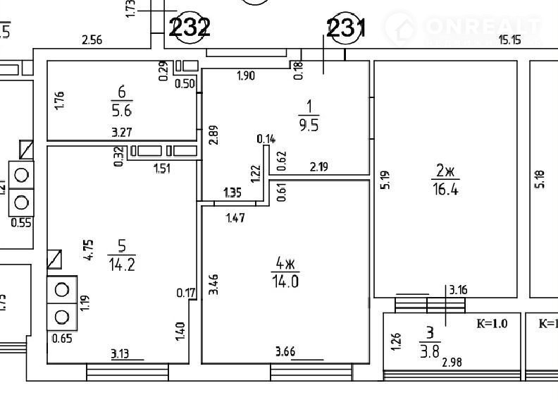 Общая площадь 63.5 м2
