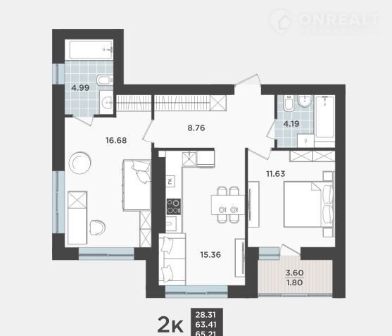 Общая площадь 63.4 м2