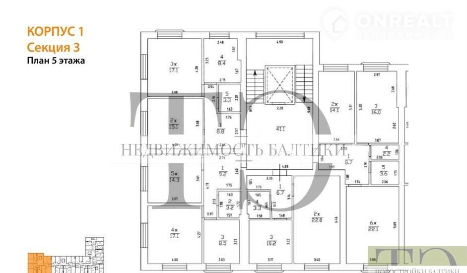 2-комнатная квартира, 66.7 м2, этаж 5 / 6, на продажу в Калининграде, Воздушный переулок, 6