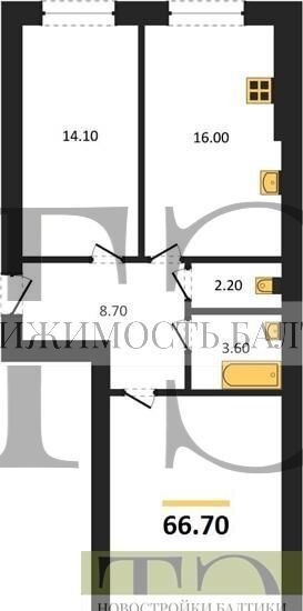 Общая площадь 66.7 м2
