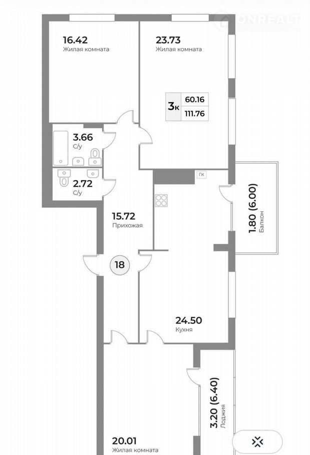 Общая площадь 111.8 м2