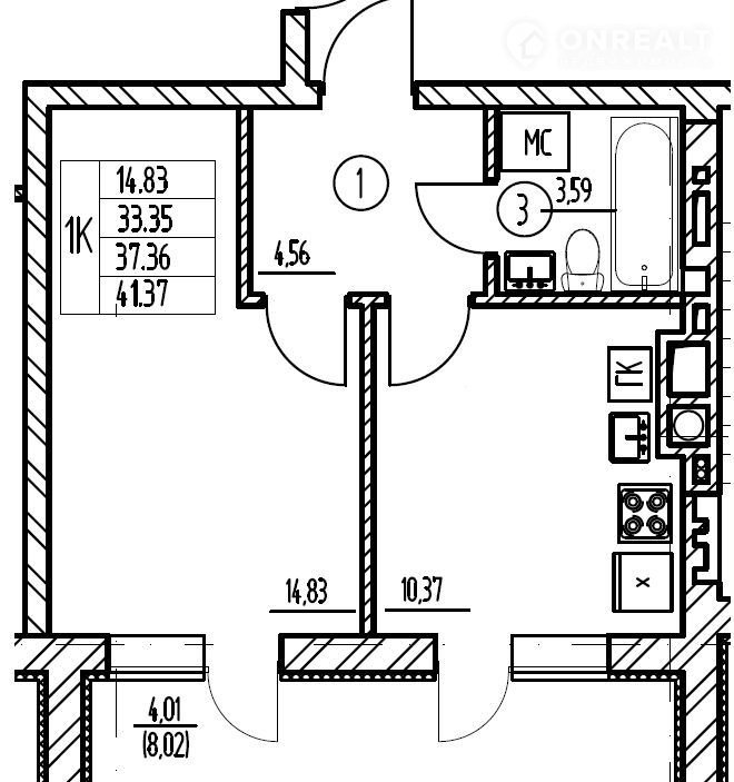 Балкон, лоджия 1 лоджия