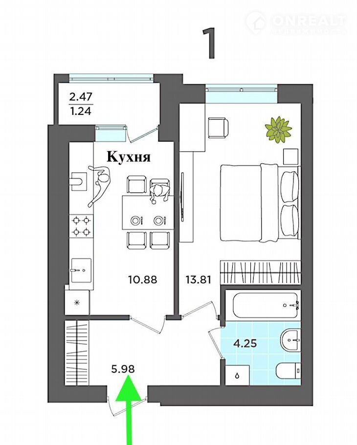 Количество комнат 1