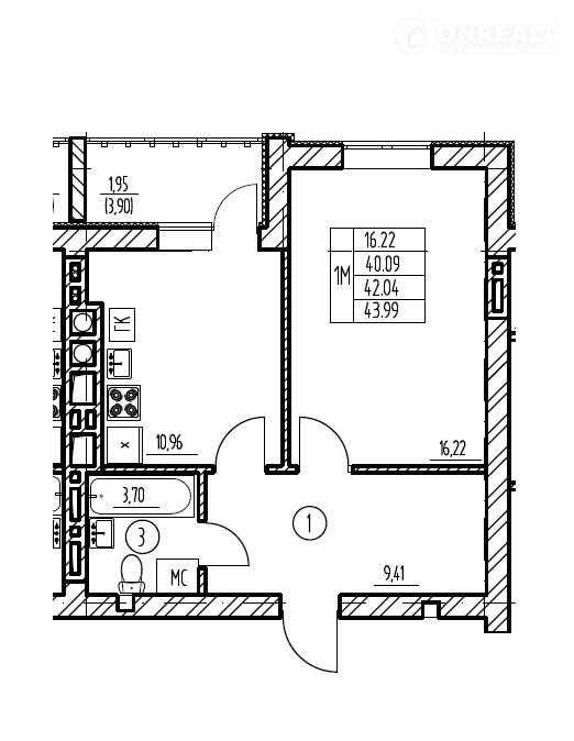 Общая площадь 42 м2