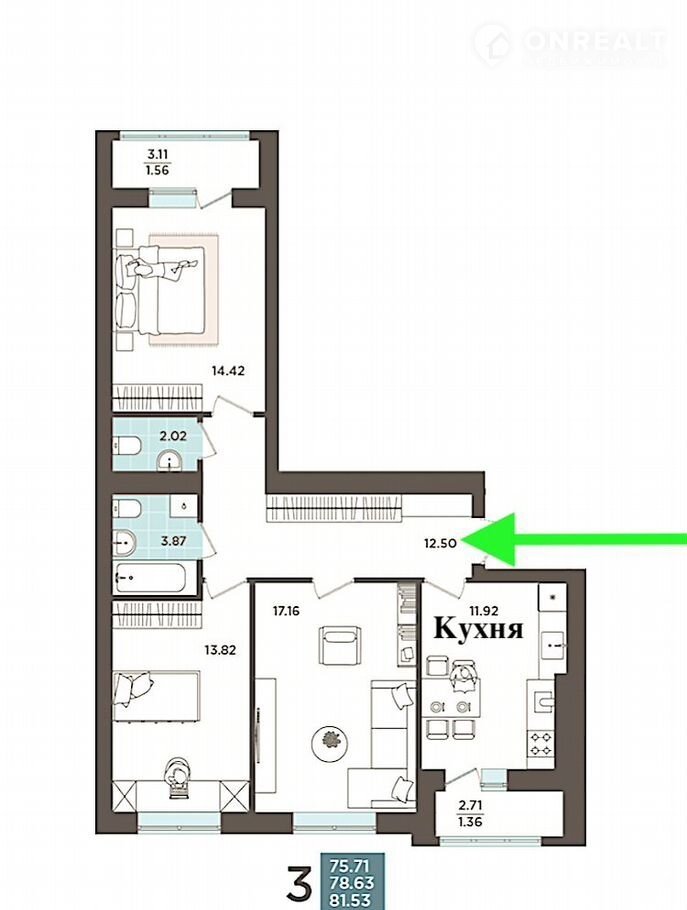 — кухня 11,9 м²;