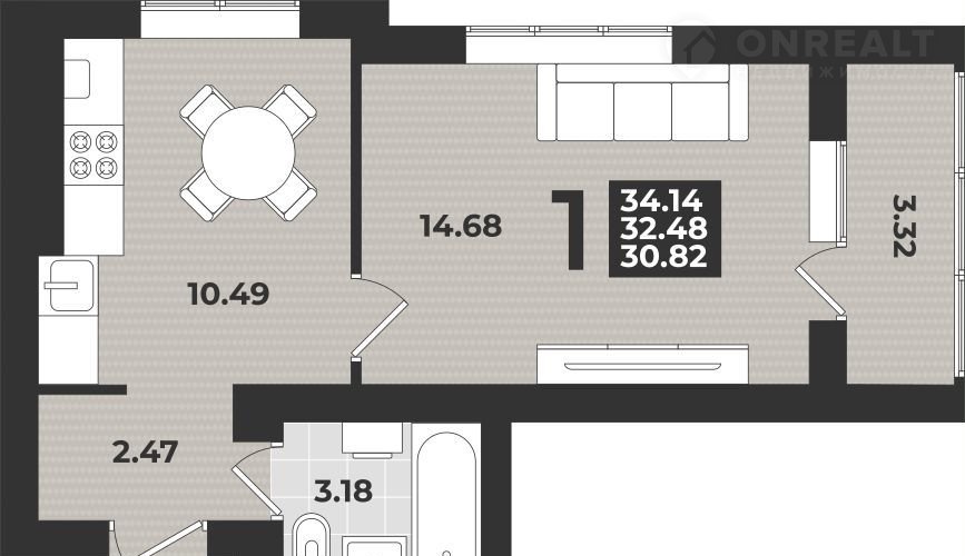 Общая площадь 34.1 м2