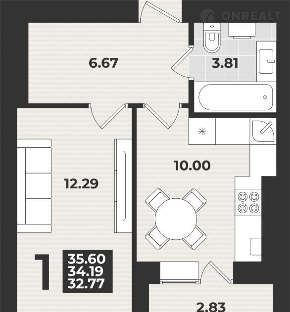 Общая площадь 35.6 м2