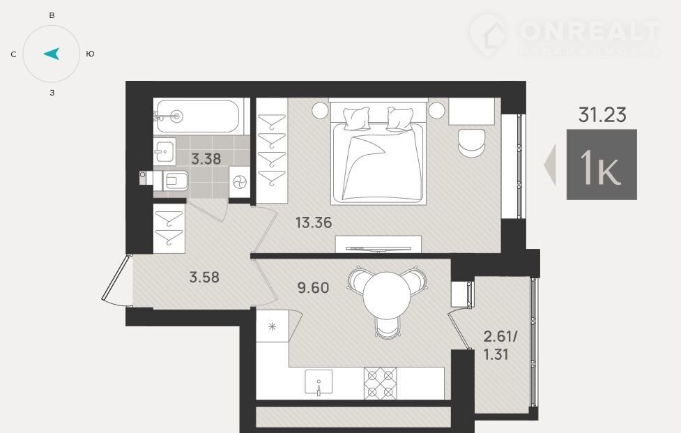 1-комнатная квартира, 31.2 м2, этаж 7 / 9, на продажу в Калининграде