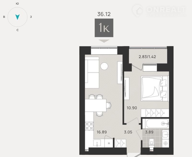 Общая площадь 36.1 м2
