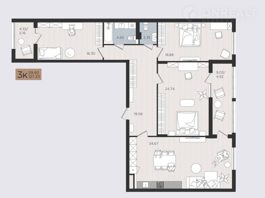 Общая площадь 127.3 м2