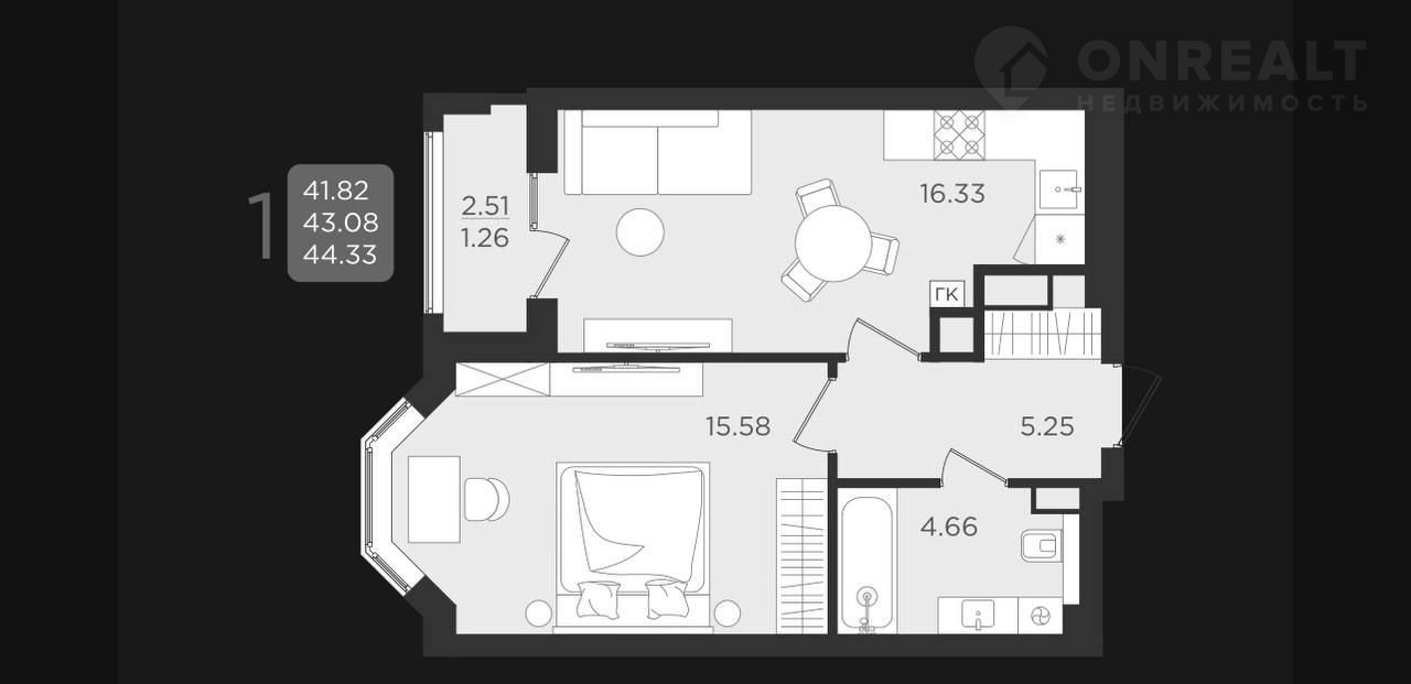Общая площадь 43.1 м2