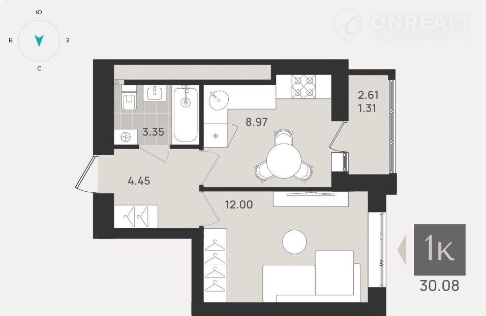 Общая площадь 30.1 м2