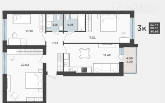 Общая площадь 90.7 м2