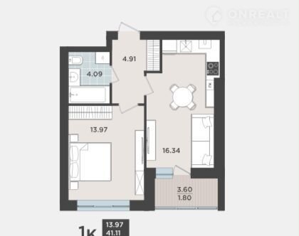 Площадь кухни 16.3 м2