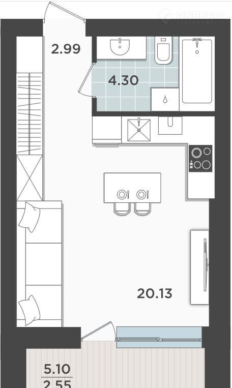 Общая площадь 30 м2