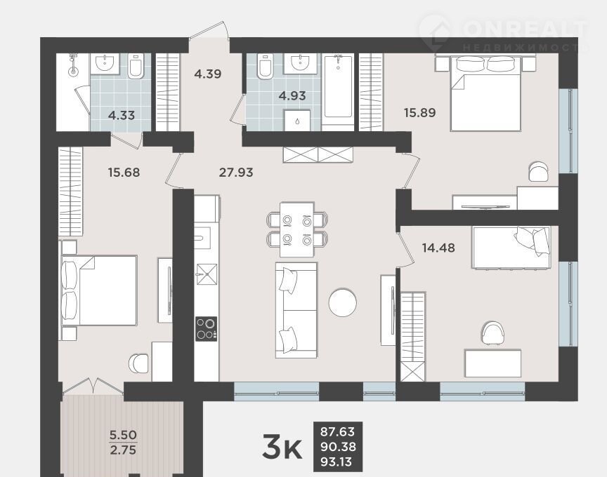 Общая площадь 91 м2