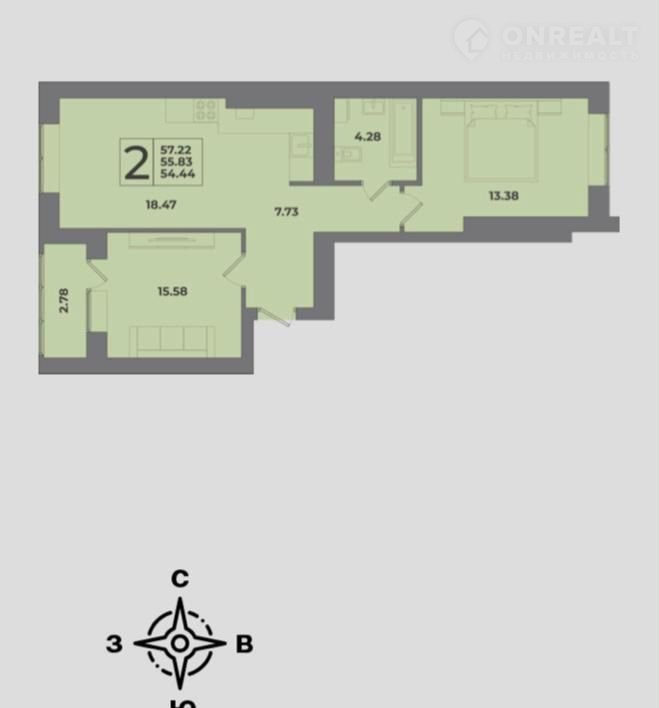 Общая площадь 57.2 м2