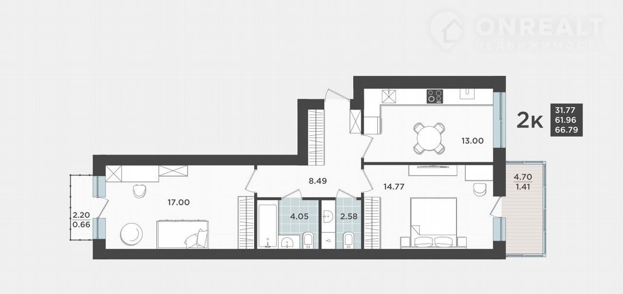 Балкон, лоджия 1 лоджия