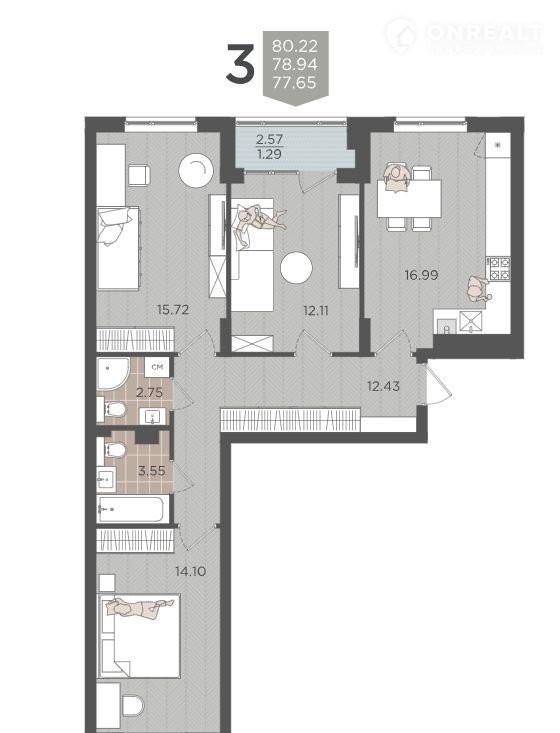 Общая площадь 78.9 м2