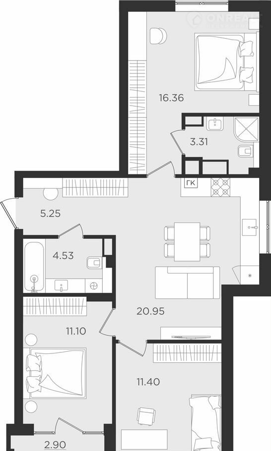 Количество комнат 3