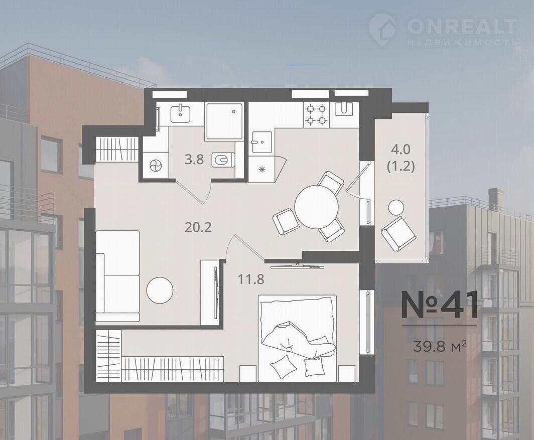 Общая площадь 39.8 м2