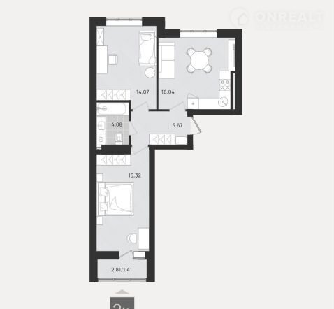 Количество комнат 2