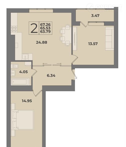 Общая площадь 67.3 м2