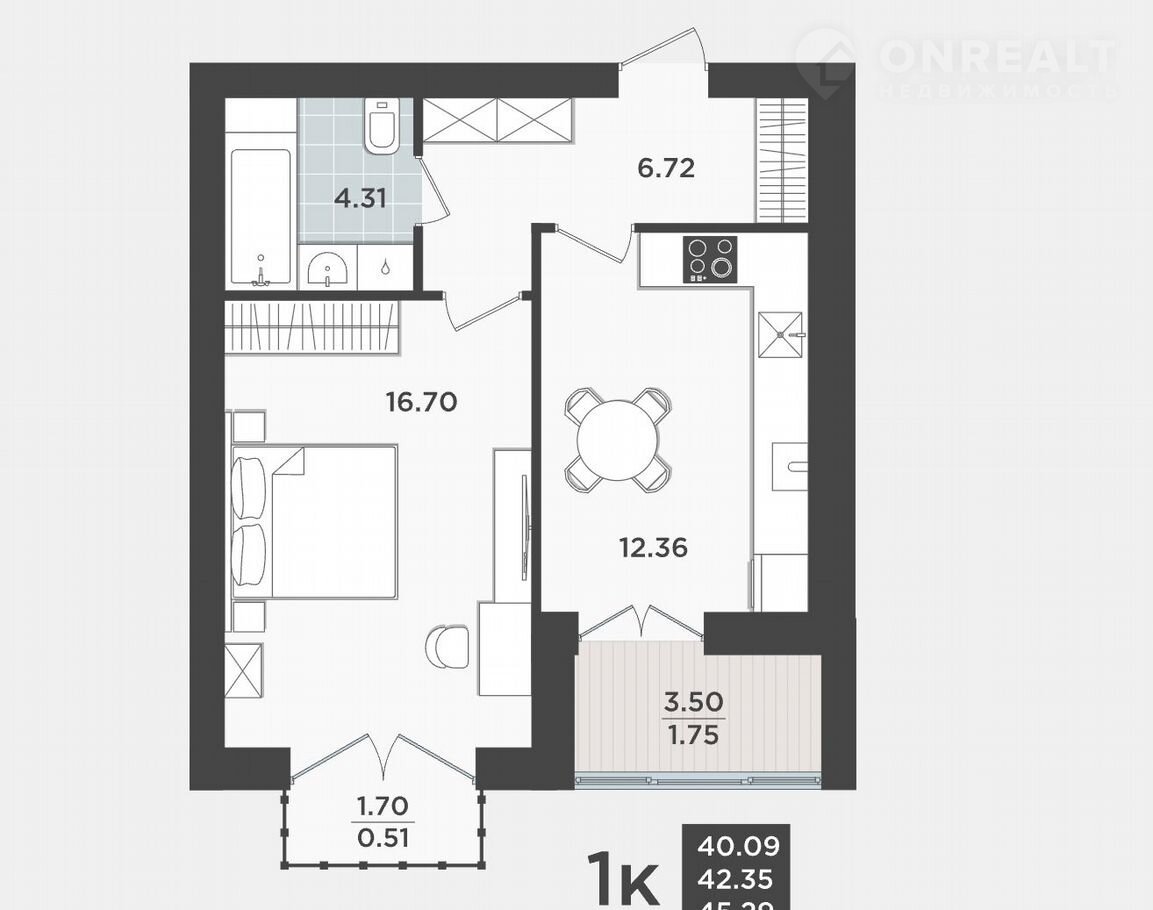 1-комнатная квартира, 41.8 м2, этаж 9 / 10, на продажу в Калининграде