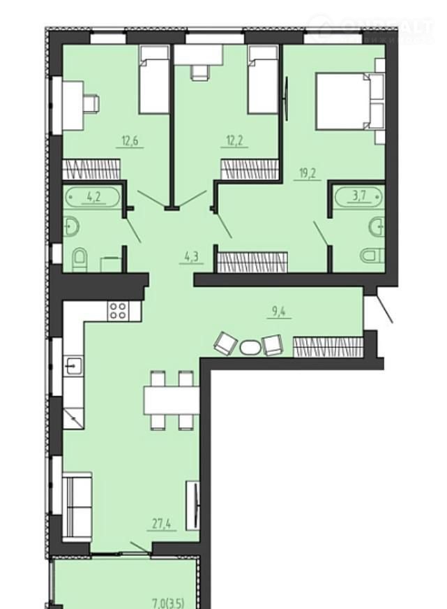 Площадь кухни 27.4 м2