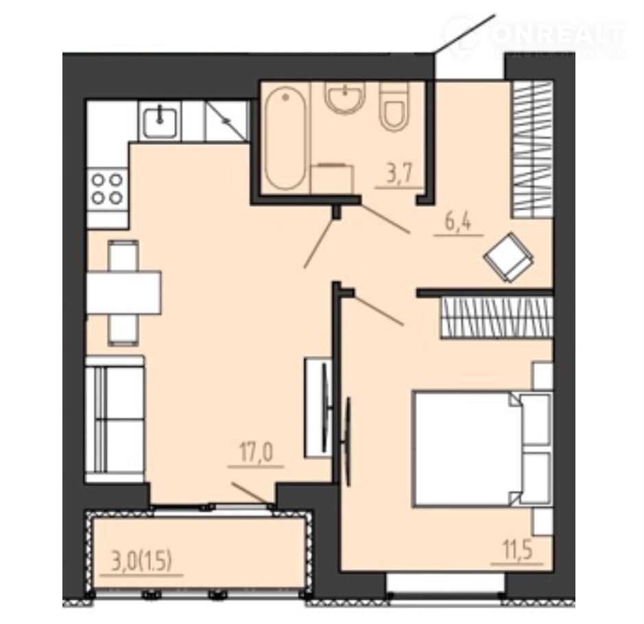 Балкон, лоджия 1 лоджия