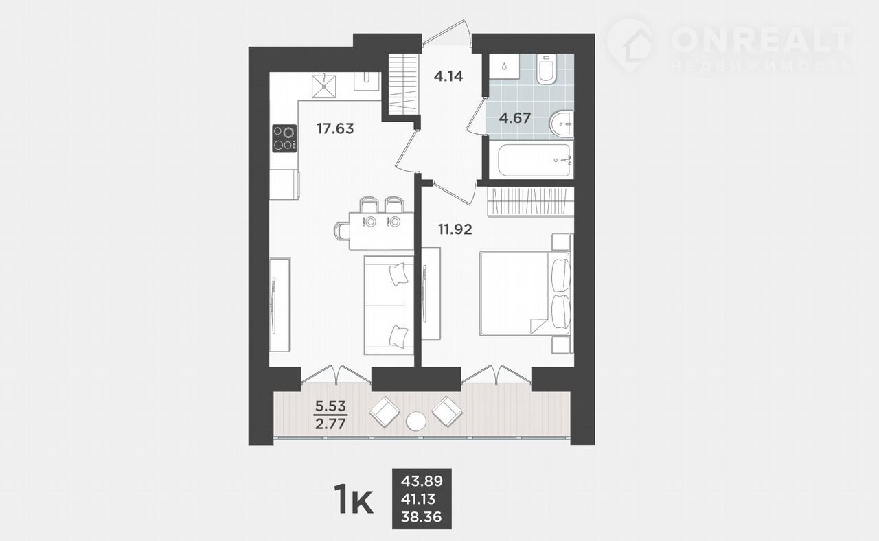 1-комнатная квартира, 43.9 м2, этаж 10 / 10, на продажу в Калининграде