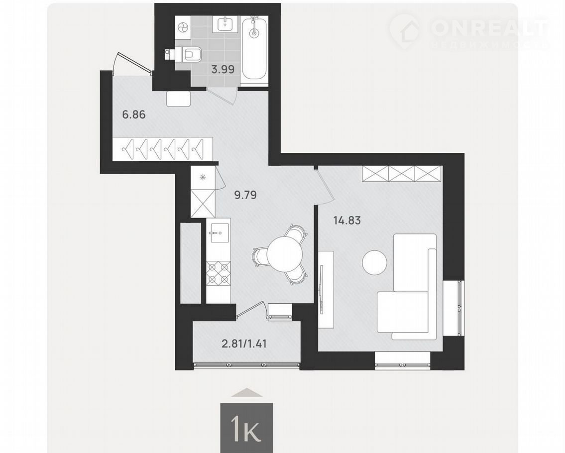 Площадь кухни 9.8 м2