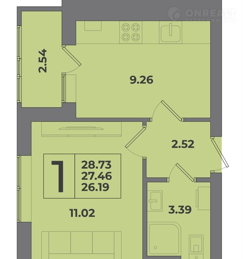 Общая площадь 28.7 м2