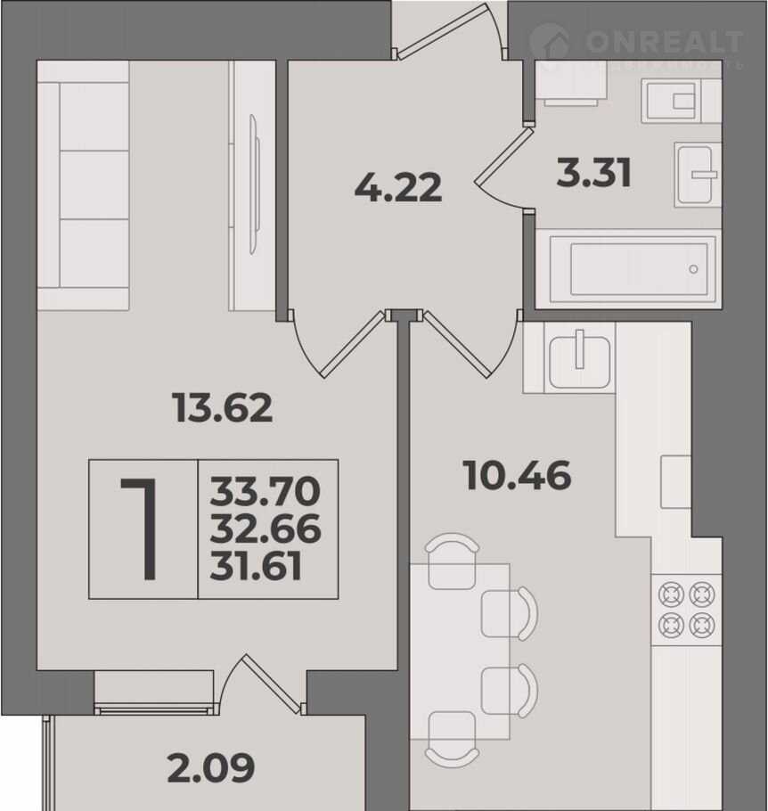 Общая площадь 33.7 м2