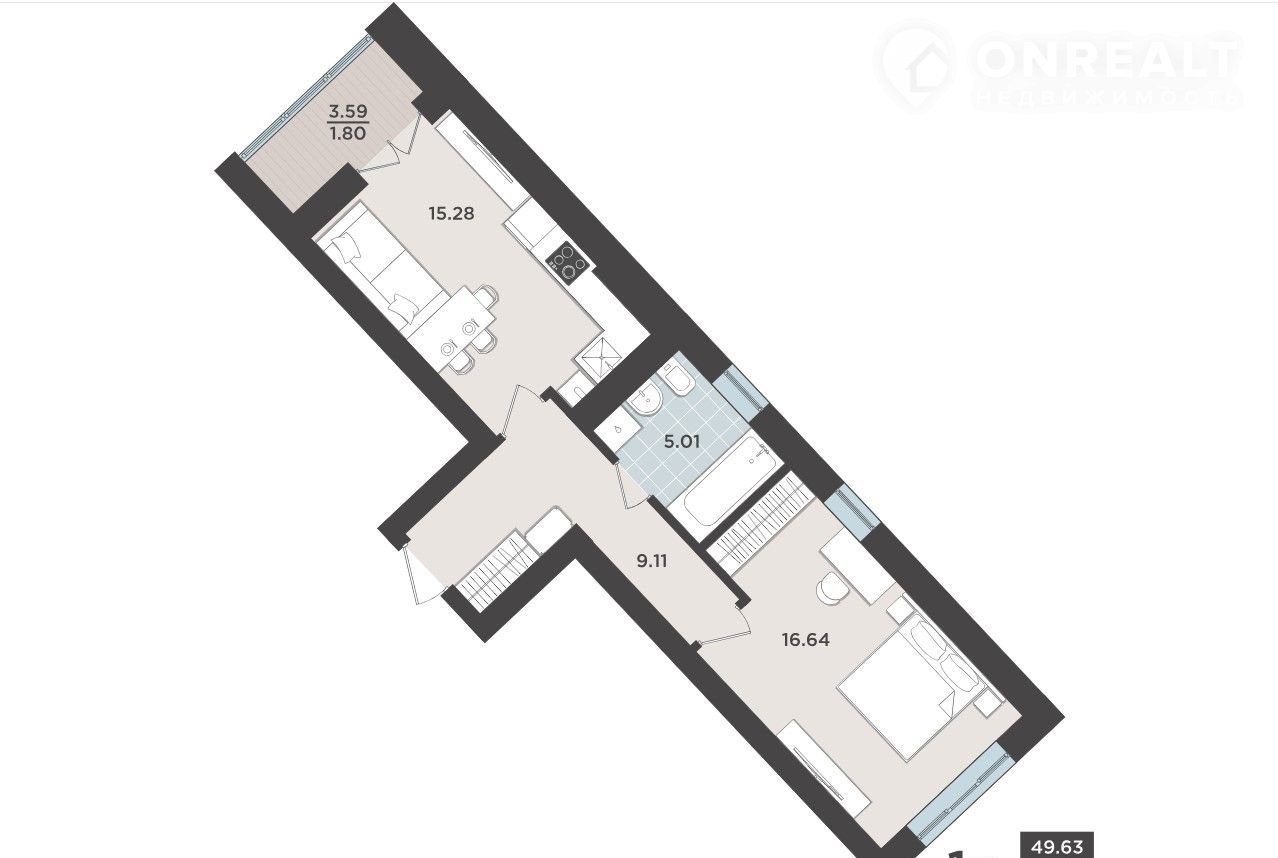 1-комнатная квартира, 47.8 м2, этаж 5 / 10, на продажу в Калининграде