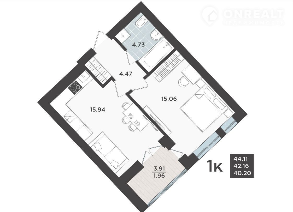 Общая площадь 42.2 м2