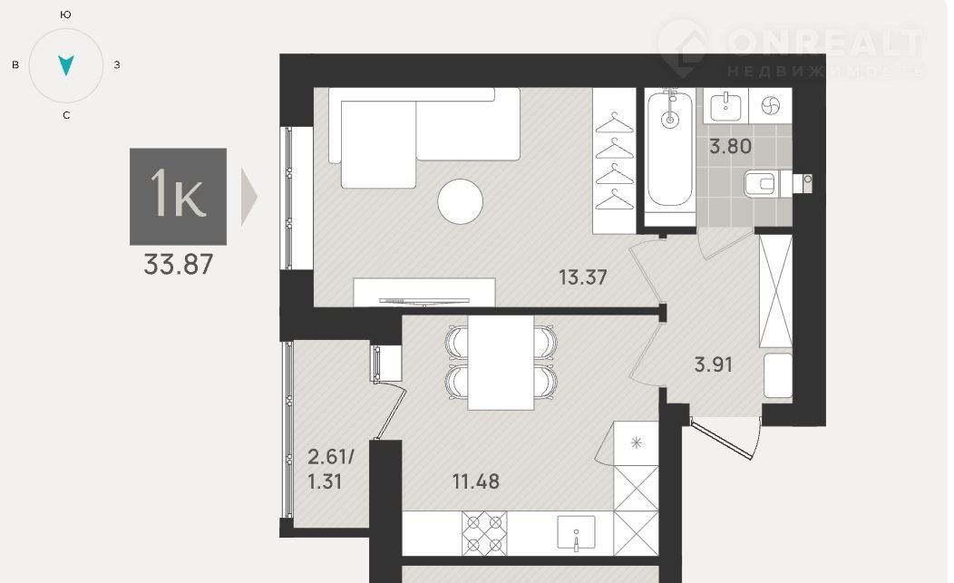 Общая площадь 33.9 м2