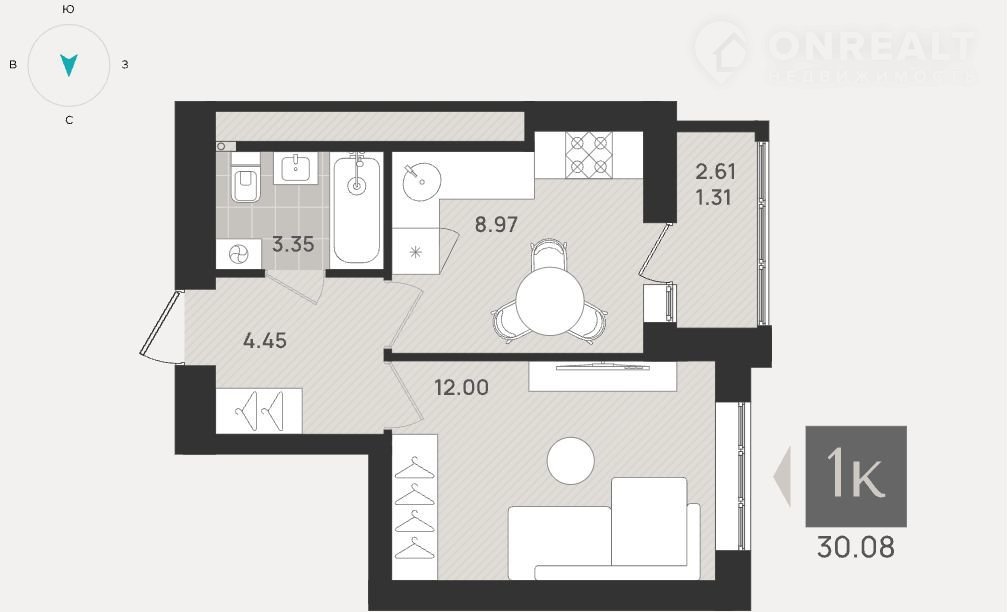 Общая площадь 30.1 м2