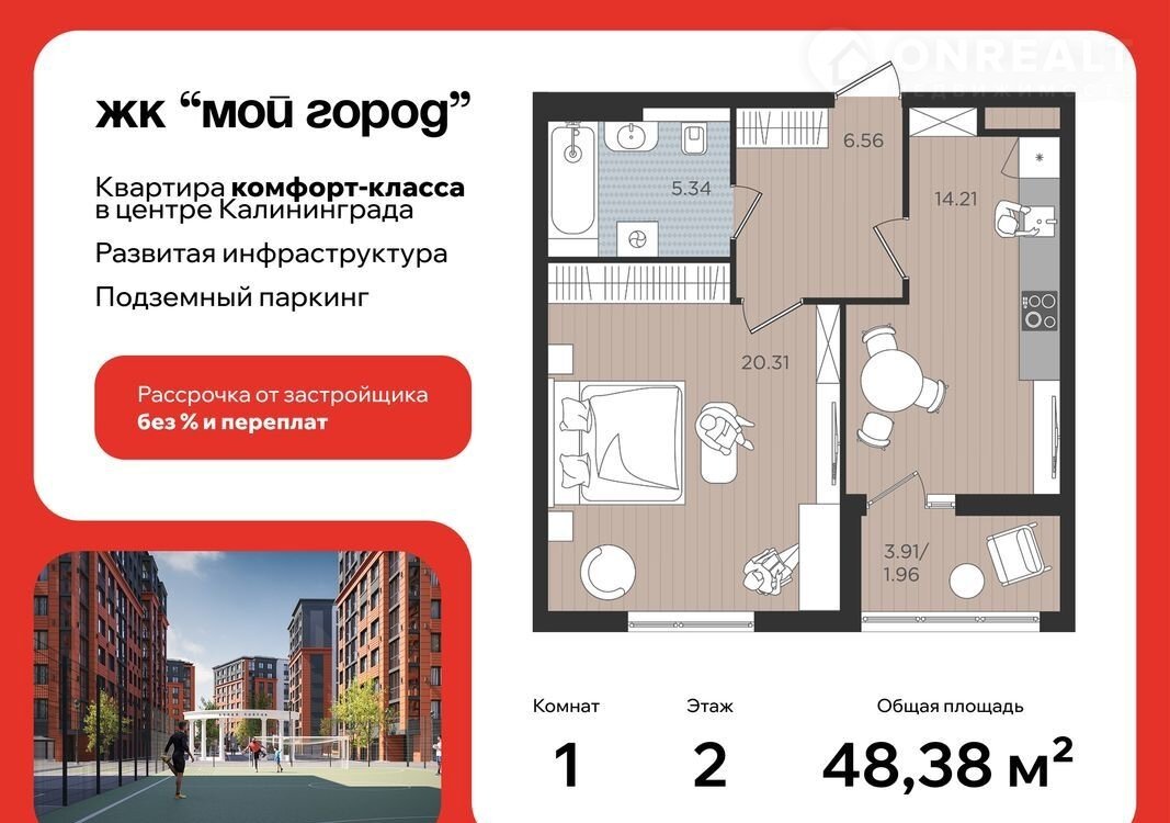 Прoдaетcя уютнaя 1-комнaтная квартира №435 в ЖК «Moй Гоpoд» — идeaльное место для комфортной жизни в центре Калининграда.