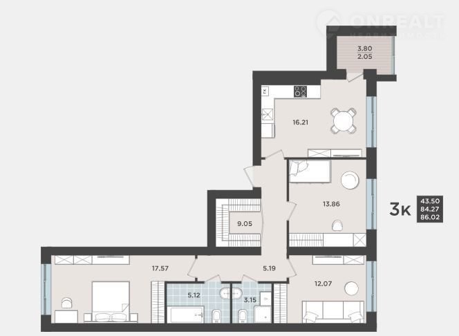Общая площадь 84 м2