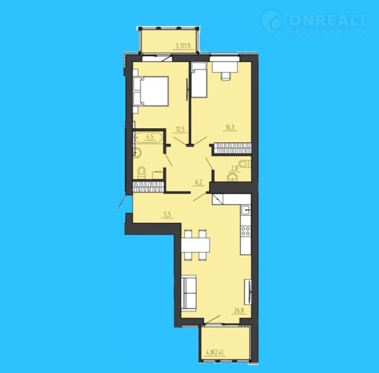 Общая площадь 83 м2