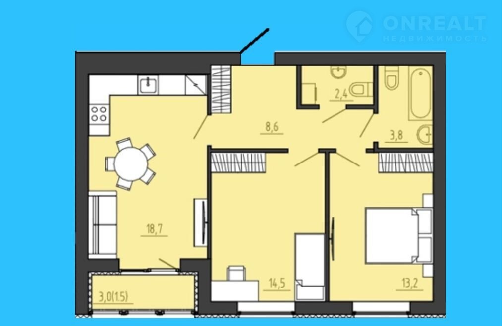 Балкон, лоджия 1 лоджия