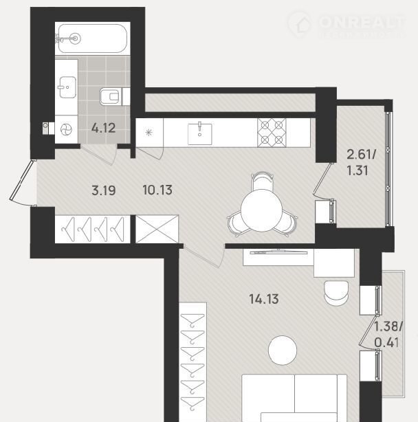 1-комнатная квартира, 33.3 м2, этаж 9 / 9, на продажу в Калининграде