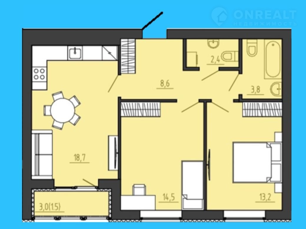 Балкон, лоджия 1 лоджия