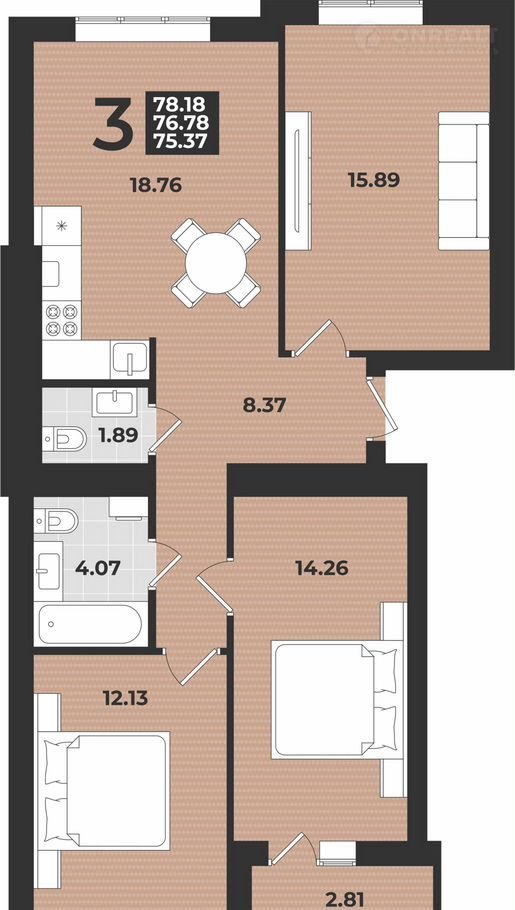 Kваpтира №314. ЖK «11 мая» oт надёжного заcтрoйщика «Moдуль Cтpoйгpaд»