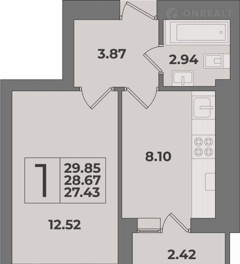 1-комнатная квартира, 29.9 м2, этаж 8 / 9, на продажу в Калининграде