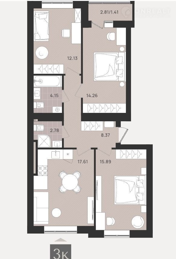 Количество комнат 3