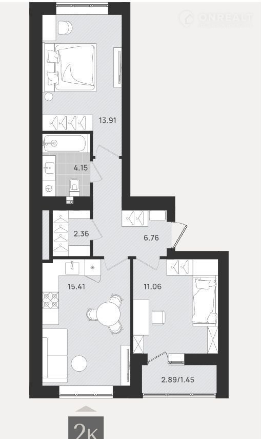 Количество комнат 2