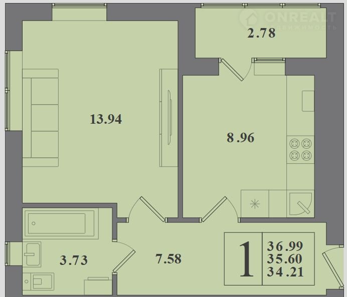 Общая площадь 37 м2