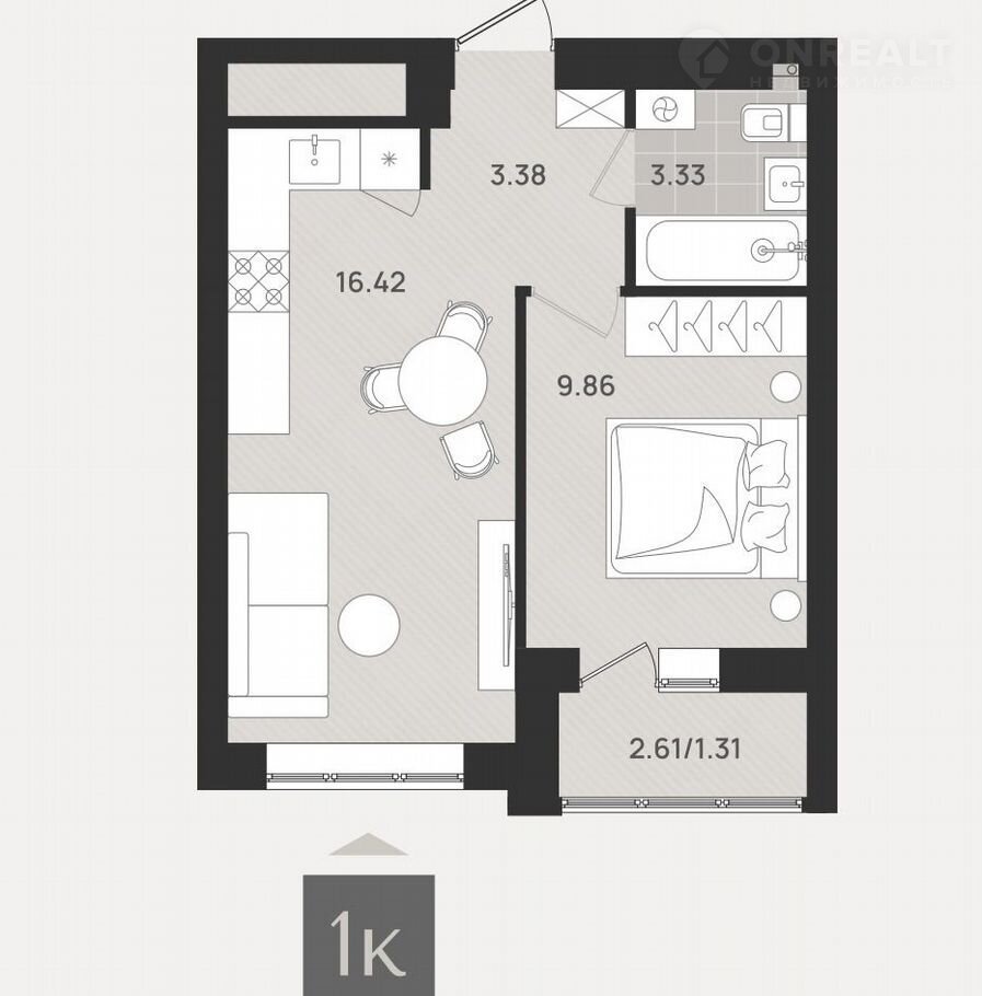 1-комнатная квартира, 34.3 м2, этаж 8 / 9, на продажу в Калининграде
